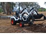 Simply drive over the mower deck, attach the mid-PTO to the deck and secure the pins.